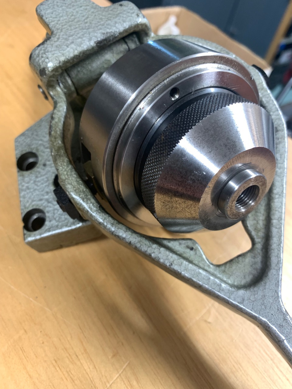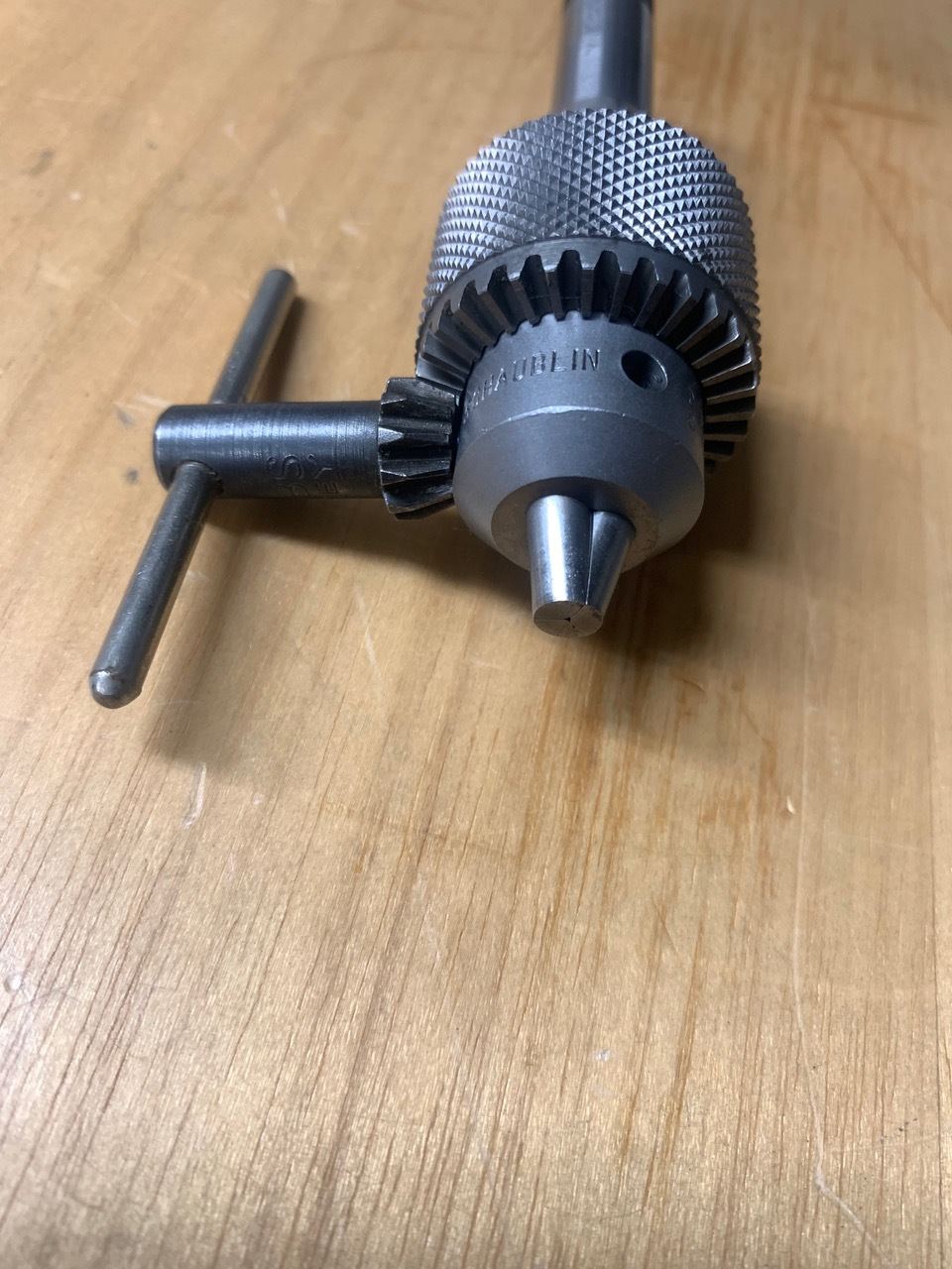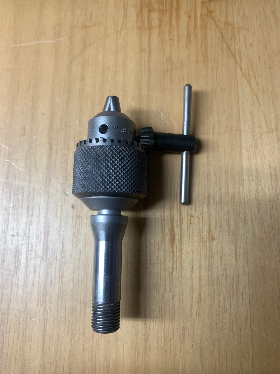 A lightly used Schaublin branded drill chuck on a W12 collet mount.