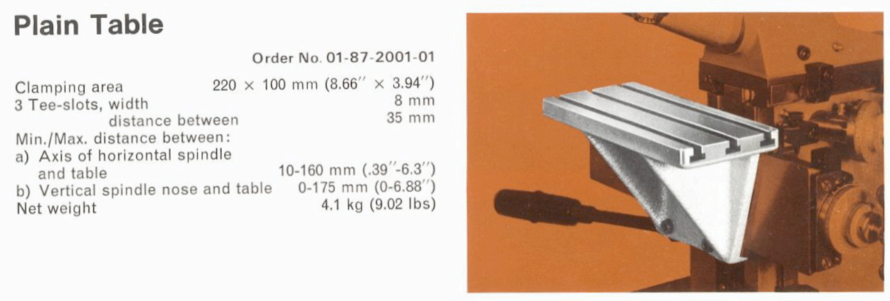 This new accessory is a modern copy of the original Aciera F1 Plain table, made to the same design and specification. The table surface has a ground finish.