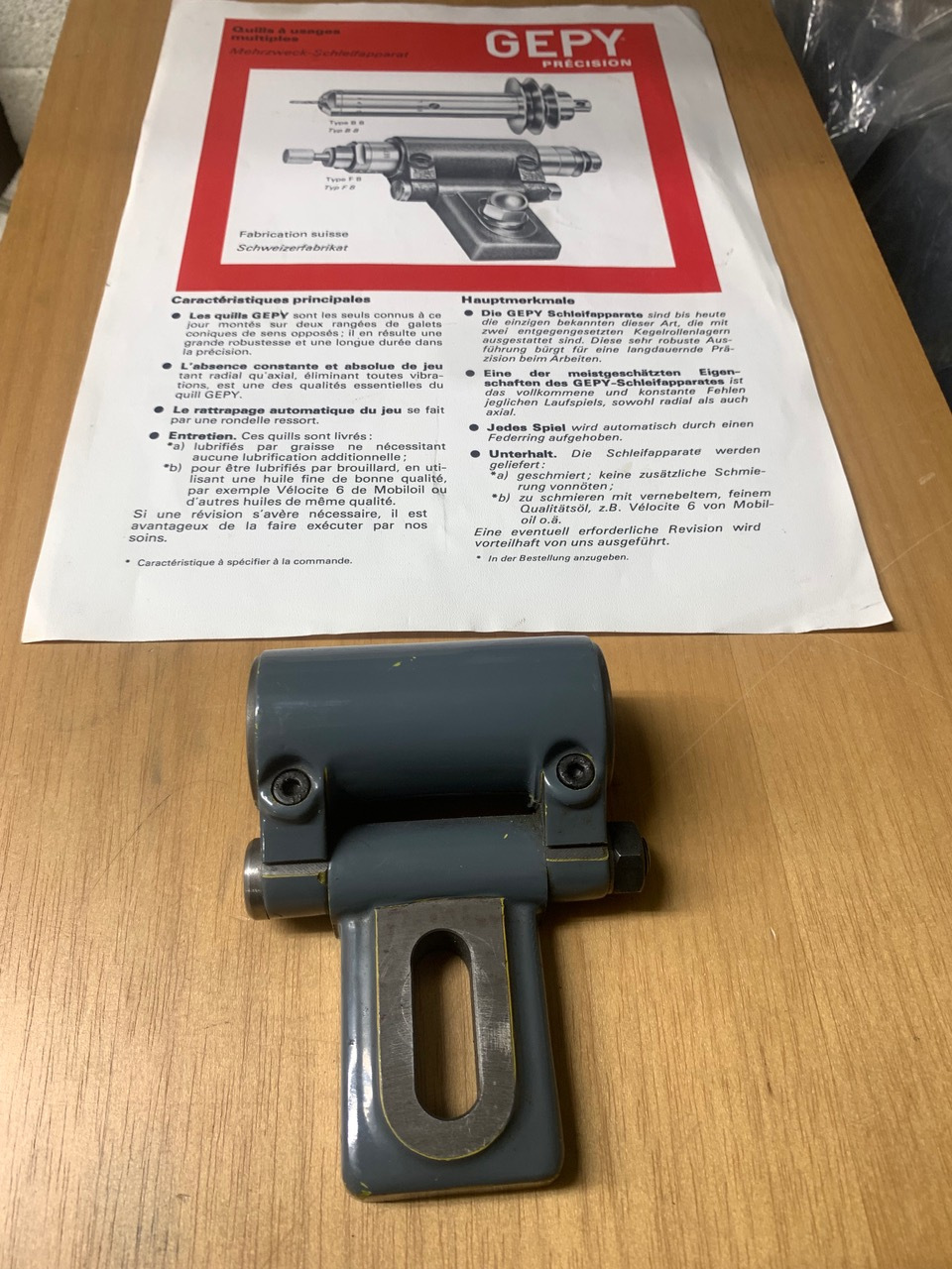 Used to mount a 25mm Gepy grinding spindle. In new condition. Current list price including VAT £1056.