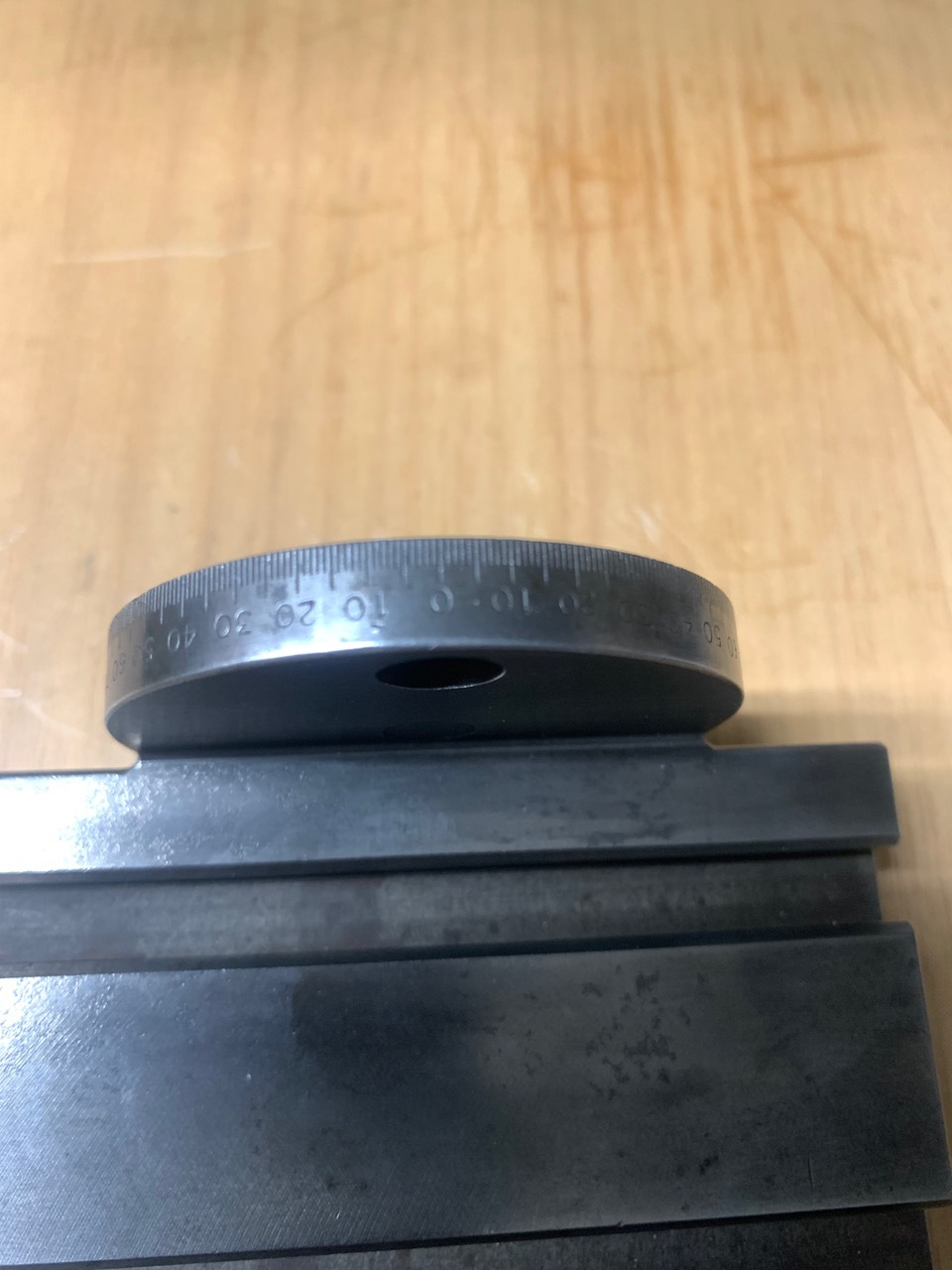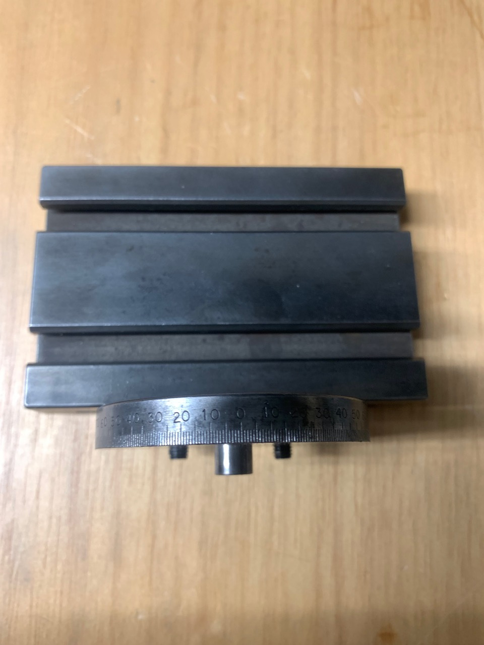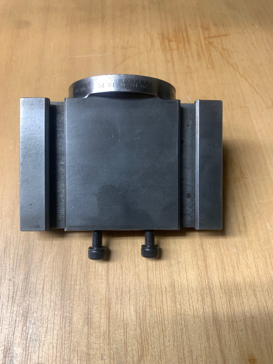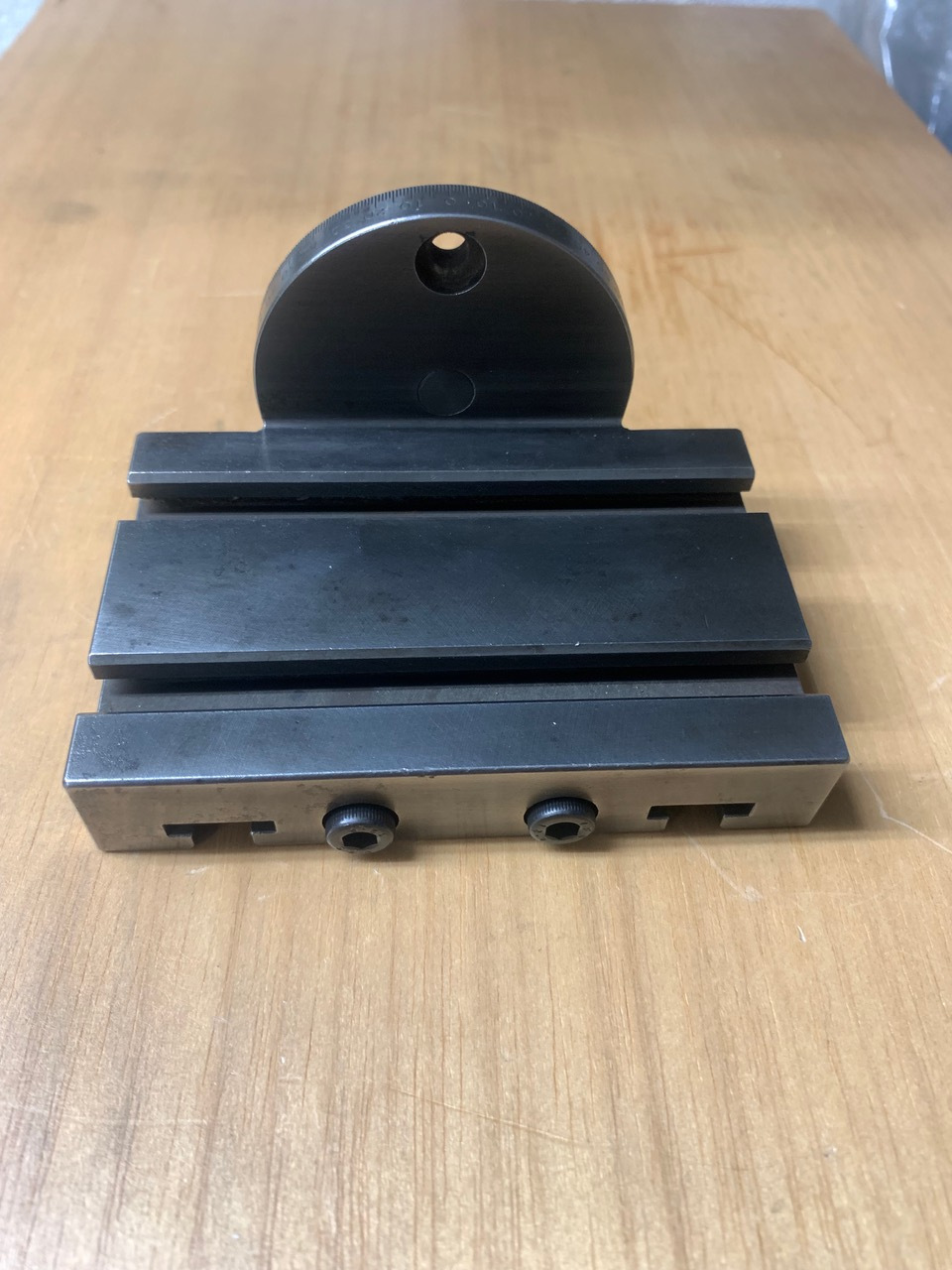 A used Schaublin 70 Inclinable table with T slots (70-87.530). This is mounted on the vertical slide. A rare accessory in very good condition.